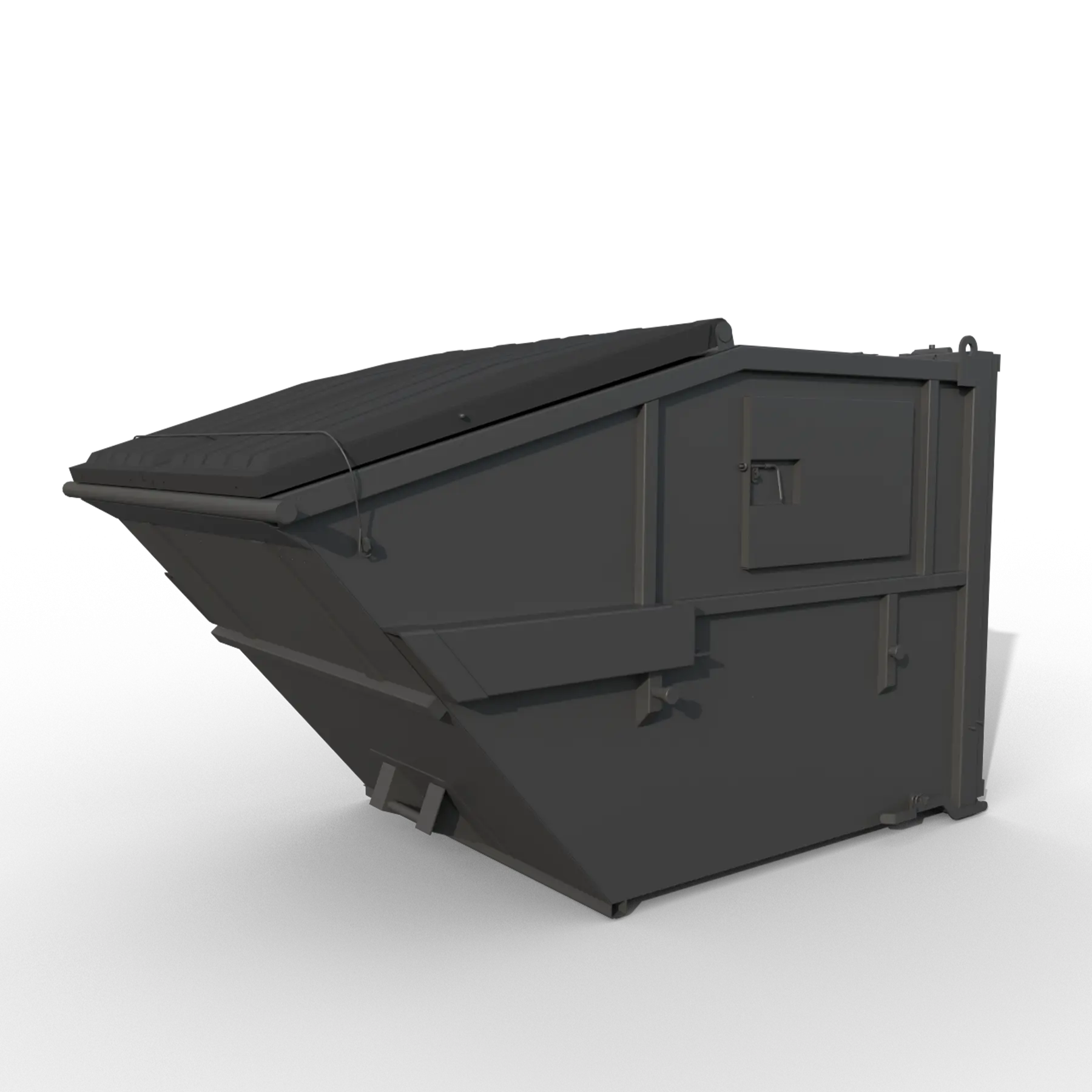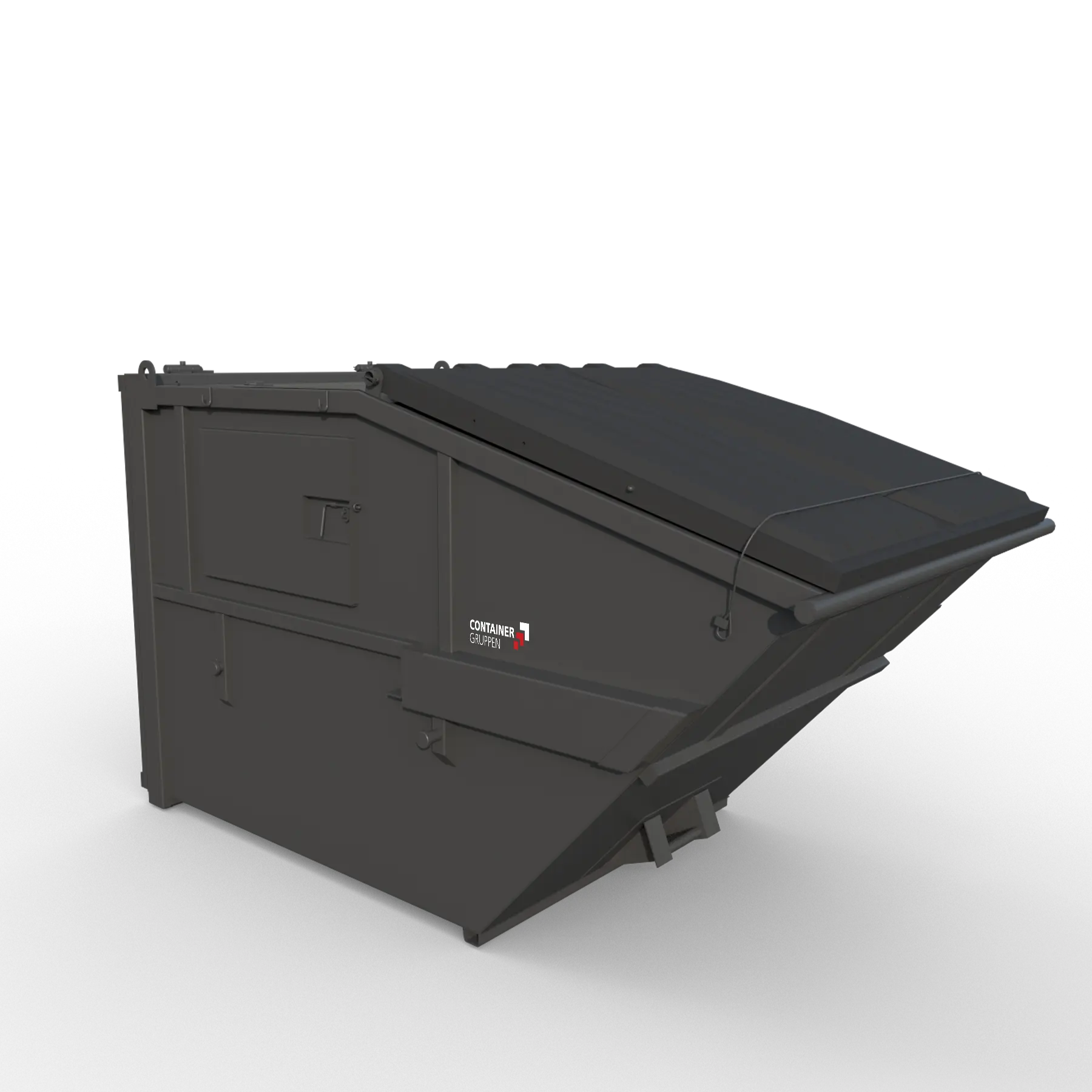 En container hvor du kan tømme på flere forskjellige måter, enten med frontlaster, baklastende- og liftdumperbil. Containerne er egnet der du trenger å dekke innholdet.